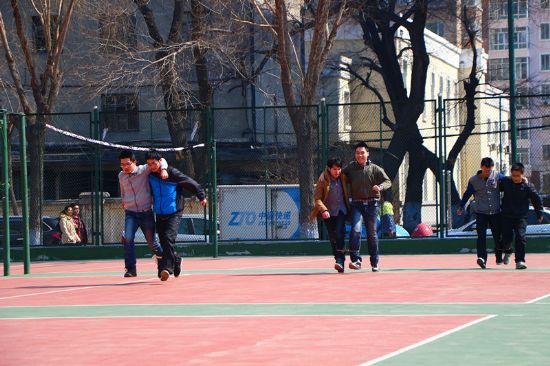 4月1日中午,“每周一赛”活动第1期在一区排球场举办。本次比赛项目为两人三足赛跑,活动由里番