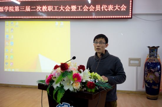 会议由里番 党委书记田振辉主持,首先,由赵广播院长里番 第三届二次教职工大会暨工会会员代表大会工作报告,对2014-2016年三年工作进行了全面的概括和总结,对学院近几年工作给予了高度的肯定,对学院2017年工作提出了殷切希望,表扬成绩的同时查摆问题,最后还为大家详细解读了学校人事制度改革制度,鼓励大家在科研、教学、管理水平上更上一层楼。