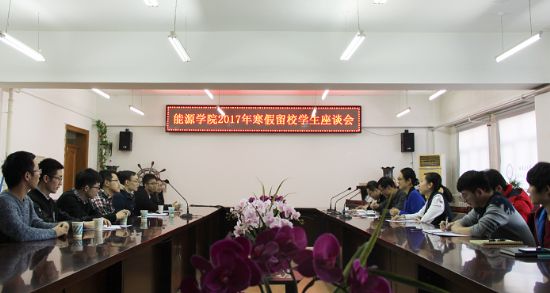 能源学院寒假留校学生座谈会与1月14日下午14:00在动力楼619举行。出席本次座谈会的有党委书记田振辉、党委副书记孙垠、全体专兼职辅导员以及里番 8名留校学生。