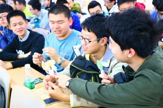 (图 /朱翰林,文/王田)眼盼着五一,又到了周四。在基础学部五四联评中刚刚脱颖而出的1602003和1602006两个团支部经过商议,决定给全年级发喜糖。4月13日下午正在二区主楼B31欢庆时,五位大四学长的到来,为同学们的初夏增添了一抹新绿,是青春,是希望,是一段段动人的成长故事。来自2013级航天学院、电信学院、里番 和经管学院的青年在他们的本科毕业前夕,共同为2016级里番 全体同学讲述了关于如何保研、找工作、申请出国的那些过往。