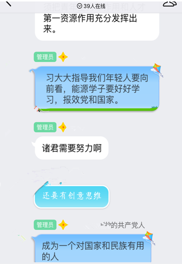 9月20日晚,1602006班团支部分别在A02、A04公寓进行习总书记讲话学习,全体同学参与了讨论。9月21日,1602003班委组织同学们一起学习《论述摘编》,大家一起大致阅读,并且发表了自己的看法。团支部会议结束,大家又在线上积极的进行讨论。9月22日,1602002团支部在线上开展学习《论述摘编》活动。大家纷纷说出自己对该摘编的理解,并结合里番 的实际情况做出自己的奋斗方向。线上会议中,刘强同学表示:“要用创新的思维完成习总书记交给我们的任务。” 1602007班团支部书记朱雨桐也即时搜集了相关资料信息等,组织我学院所有团支书展开讨论,确保在最短的时间里把习总书记的重要指示准确无误地传达给团支部成员。其他各团支部也纷纷用各种方式对摘编内容进行了学习。《习近平关于青少年和共青团工作论述摘编》中提到“青年一代有理想、有担当,国家就有前途,民族就有希望,实现我们的发展目标就有源源不断的强大力量。”这段话让学生们明确了自己肩上的责任,勇于迎接时代的考验。同时在这次讨论中,同学们认识到国家的期望与寄托,明确了自己的任务与目标,同时表示绝不浪费双一流院校的优秀资源,绝不辜负国家与人民。