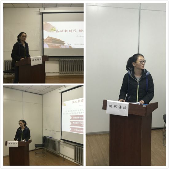 的研究生,一名新时代青年以及以后社会建设发展的主力军,我们刻苦科研,踏实肯干,为祖国的现代化创新贡献自己的力量。田慧敏同学通过十九大对我们的党产生了更加崇高的敬意,因为我们的党一定会恪尽职守、勤勉工作、不辱使命、不负重托,永葆蓬勃朝气,永远做人民公仆、时代先锋、民族脊梁,中国人民生活一定会一年更比一年好。李云飞同学则细致的为大家分享了对十九大所提出的方面精神的感悟,结合自身的科研学习道路与党和国家的发展阶段进行了深层次的阐述。