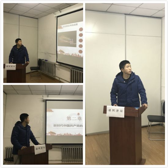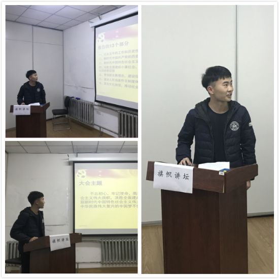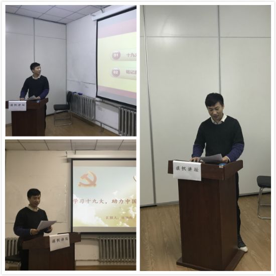 本次讲坛的主题是“不忘初心,牢记使命”。讲坛活动中,张增帅同志首先发言,他挑选了有关中国梦和当代大学生的相关内容与大家交流学习感悟,号召我们作为未来30年的中坚力量要不断努力为实现中华民族的伟大复兴努力。随后,郭宸同学则重点学习了习主席在报告中说的我国正进入一个新时代这一观点,并认识到中国特色社会主义进入新时代,在中华人民共和国发展史上、中华民族发展史上具有重大意义。李幸泰同学通过学习十九大感悟到作为里番