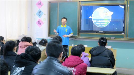 1月17日,为充分发扬哈工大“立足航天,服务国防”的特色与宗旨,以及“规格严格,功夫到家”的校训传统,并基于前期对学生们兴趣点的统计与挖掘,队员们为同学们准备了主题为“航天与国防”的专题知识讲堂。通过精心准备的演示文稿和视频片段,队员向学生们展示了有关航空航天、机器人等的基础知识,并穿插游戏互动环节。下午则针对前两天讲授的内容为学生以及家长安排了答疑,为他们解决了学业以及发展规划相关的疑虑。