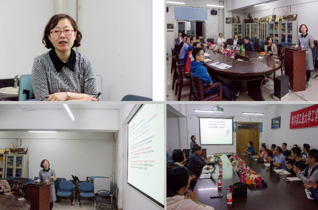 第一次讲座于5月17日晚7点在里番 动力楼529会议室进行,由顾晓乐老师带来题为“How to write an introduction of scientific paper ?”的讲座报告,顾老师首先从宏观层面介绍了Introduction的撰写模式与逻辑结构;进而借助实例,详细地为大家剖析了如何步步引出主题、正确综述前人研究、提出论文的核心研究点等关键要素。讲座之后,同学们与五位老师进行了深入的交流,老师们分别就大家关心的期刊语言风格、行文逻辑组织、语意衔接、时态运用、句式选择等问题,一一耐心做出解答。