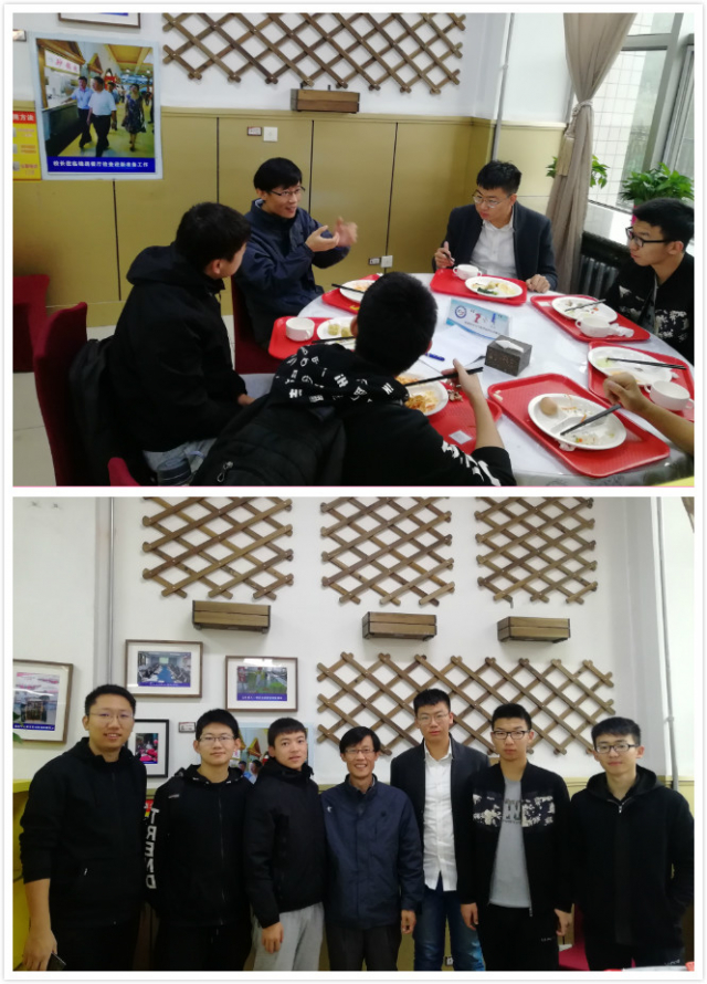 为了帮助本科生尽快适应快节奏的专业基础课学习,了解专业发展方向,解决生活学习中的苦恼,10月10日清晨,在学苑楼自助餐厅里番 学生会邀请学院党委书记田振辉和六名学生共同参加了第二期“?+!”师生早餐会活动。