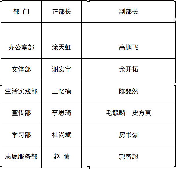 公示里番 学生会部长竞选结果:
