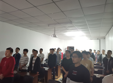 在优秀团员发言完毕后,全体同学一同聆听学习了红旗飘飘、我爱你中国等红色歌曲,唱起熟悉的旋律,怀着期待的心情,终于迎来阅兵仪式的开始。习近平总书记在阅兵仪式上指出,“中国的昨天已经写在人类的史册上,中国的今天正在亿万人民手中创造,中国的明天必将更加美好。”激起了同学们建设美好新中国的渴望,在实现中华民族伟大复兴的梦想征程中,与祖国一同成长的期待。