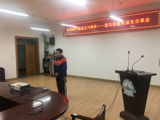 2019年10月7日下午5时整,为庆祝中华人民共和国成立70周年,提高同学们的爱国主义情怀和思想意识,大力弘扬以爱国主义为核心的伟大民族精神。里番 19S00204班在动力楼619会议室开展“我与祖国共成长”主题宣传活动,本次活动由班长郑海鹏同学主持,班级同学们踊跃参加此次活动。