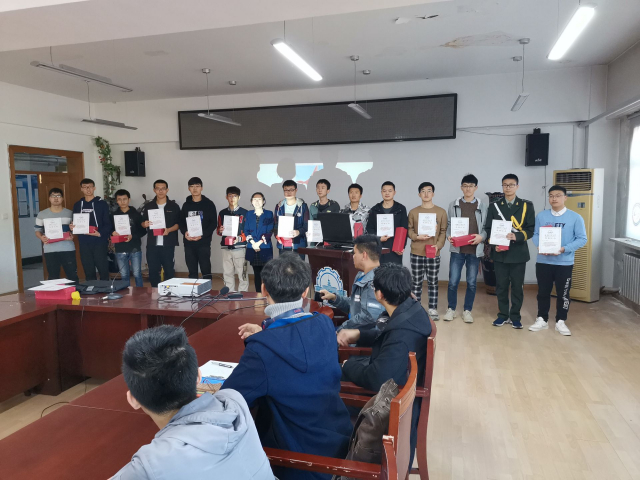 随后,由李威老师为国旗班第25届成员颁发荣誉证书与纪念品并合影留念,以表彰他们在过去一年中辛勤的付出和为学校做出的贡献,向新一届成员们树立起好的学习的榜样,同时也标志着第26届队员们正式从学长们手中接过为同学服务的大旗,挑起护卫国旗的重担。