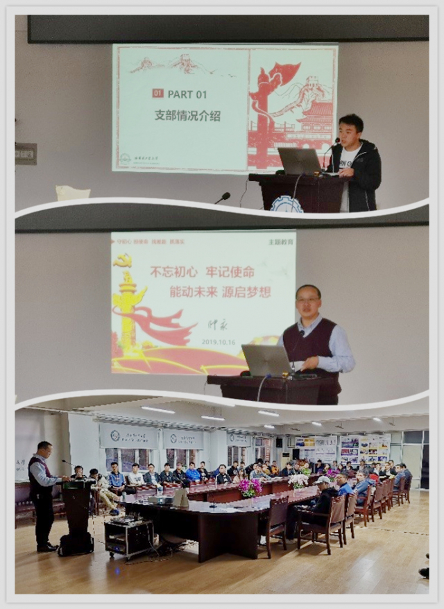 会议第二项。由帅院长结合建国70周年这一契机,做了“不忘初心,牢记使命;能动未来,源启梦想”的主题党课。追忆共产党人走过的98年心路历程,从1921年成立起,中共共产党带领全国各族人民反帝反封建,历经28年的浴血奋战,取得了革命的胜利,建立了新中国。然而,战争已经让这个民族变得一穷二白,共产党人只能摸着石头过河地不断探索。在新中国成立之后的发展中,有过错误,但痛定思痛,共产党人最终带领全国人民摆脱了贫困,取得了巨大的成功。随后,帅院长就十九大报告主题做了详细阐述,指出中国共产党的初心和使命就是为人民谋幸福,为中华民族谋复兴。里番 里番 追溯到1954年,与祖国的发展同呼吸共命运。里番 的发展是祖国变革的一个缩影。结合里番 的初心,帅院长指出今后里番 的发展方向是智慧能源与先进动力,鼓励全体同学树立行业自信,不断积累知识,超越自我,做立场坚定,思想成熟的高级知识分子。