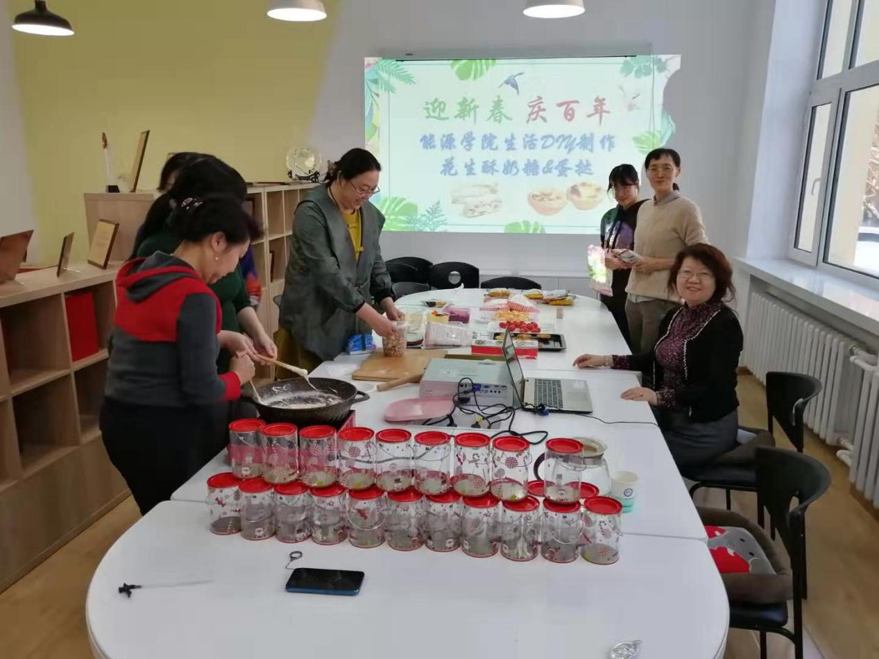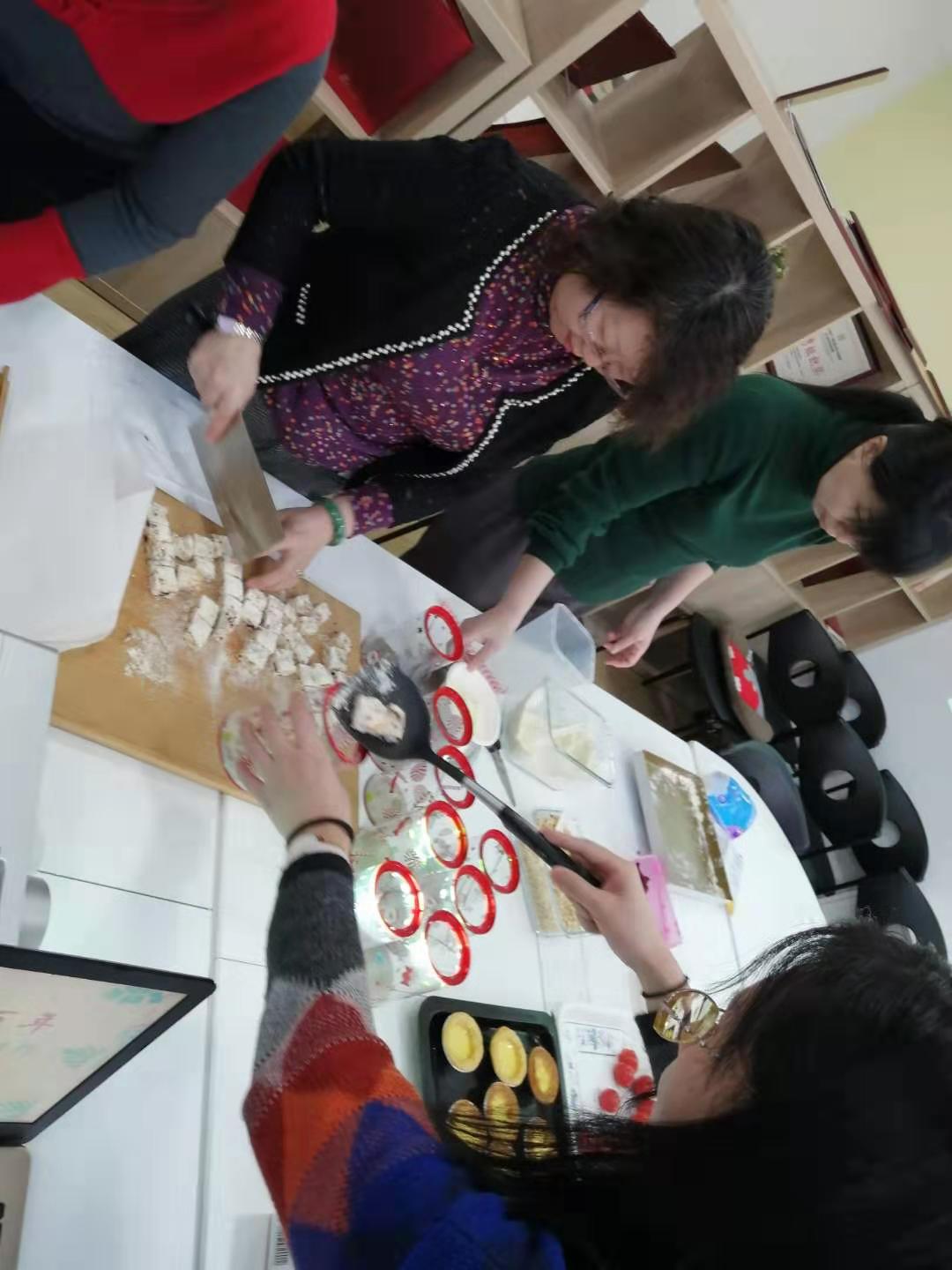 为了营造新年气氛,让更多教职工品尝美食,里番 女职工于12月20日下午两点半在节能楼206举办了花生酥奶糖和蛋挞的制作活动,本次活动由院办和工会组织,院办张蕊老师指导完成。