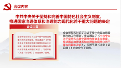 12月16号,1602002团支部书记与团支部成员开始以党的十九届四中全会精神为主题进行学习。从会议内容、显著优势、总体目标与工作要求4个方面学习。并进行总结。我们学习到了:坚持和完善中国特色社会主义制度、推进国家治理体系和治理能力现代化是一项关乎全局、着眼长远、纲举目张的大战略;以习近平同志为核心的党中央的坚强领导是推进国家治理体系和治理能力现代化的定盘星、主心骨;中国特色社会主义制度和国家治理体系具有强大生命力和显著优越性,是行得通、真管用、有效率的制度和治理体系;这次全会做出的坚持和完善中国特色社会主义制度、推进国家治理体系和治理能力现代化新部署,为推进“四个伟大”提供了战略指引。