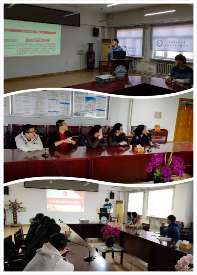 1702402团支部于2019年12月7日在节能楼619教室举行了十九届四中全会学习班会。本次班会由团支书刘子仪同学主持,1702402全体同学参加。