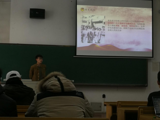 1702403团支部的同学在班委的组织下举行了学习一二九运动精神的学习报告会。