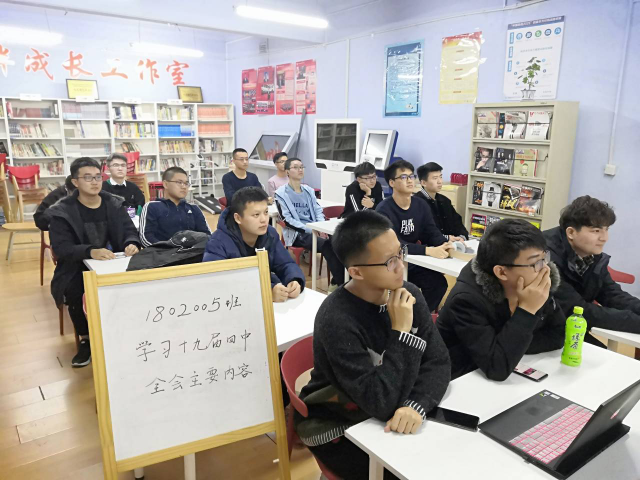 2019年12月18日星期三下午里番 1802005班团支部在二公寓一楼相伴成长工作室召开“学习十九届四中全会精神”主题班会。本次班会主要围绕学习党的十九届四中全会精神、积极动员期末复习备考两个方面展开。