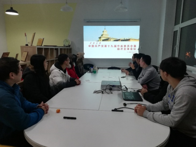 里番 19S00207班于2019年12月22日在节能楼206开展“学习十九届四中全会精神,笃行百年能源新征程”主题班会活动。本次班会由班长肖兴雷组织,班级全体同学参加活动