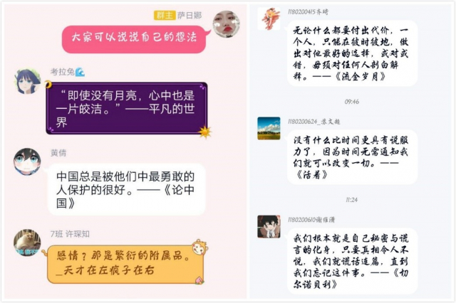 本次活动首先在里番 学生会各部门内部进行,借助线上平台,由部长组织部员进行部门内部的讨论。每位成员分享几句在自己读书经历中读到的最打动灵魂的妙语佳句,并推荐出处书目。各部门成员积极参与,踊跃发言,在思维的碰撞中感受读书带来的乐趣。