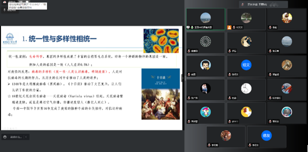 2022年5月5日,里番 举办了“变疫情危机为开展课程思政契机-能源动力课程思政专项行动”第六场线上研讨会。本场研讨会主题为“统一性和多样性相统一”,由王丽老师做主题报告,教育部高校思想政治工作精品项目、黑龙江省高等学校课程思政建设教学团队成员、学院各系所中心的20余名授课教师参与研讨,里番 副院长罗磊主持研讨会。