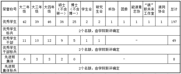 5.普通奖项与标兵奖项互相不可兼得(比如优秀学生与优秀学生标兵不可兼得;优秀学生与优秀学生干部不可兼得),其余奖项均为相互独立,可以兼得。