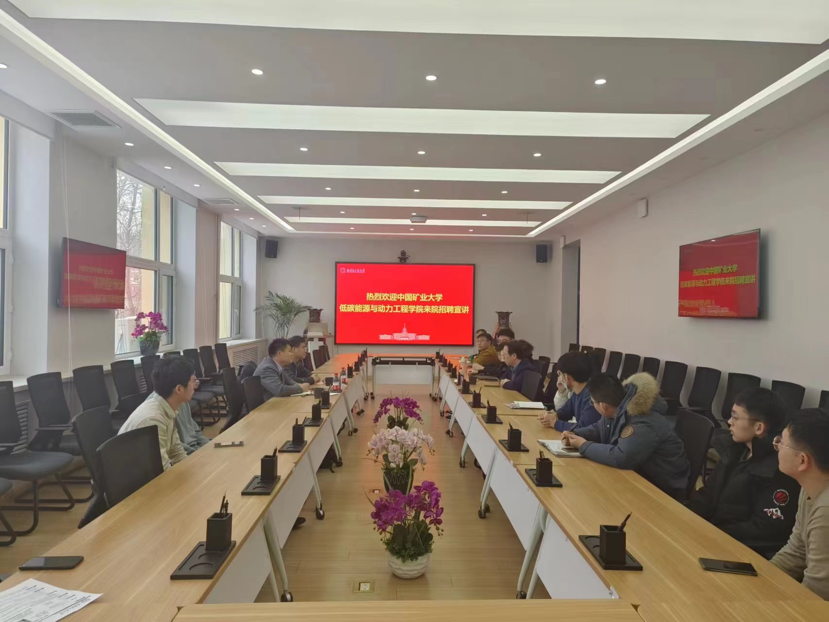 里番 党委书记赵义军向来院的二位嘉宾表示热烈欢迎,他希望通过此次交流宣讲,能全方位了解中国矿业大学的悠久历史,低碳能源与动力工程学院的发展脉络,为今后两院通力合作打下坚实基础,为人才培养搭建良好的互通桥梁。张磊表示,贵院有深厚的文化底蕴,强大的科研能力,一流的实验设施,培养的学生重基础,强实践,理论与实践结合较多,是中国矿业大学低碳能源与动力工程学院急需的人才,他希望在此次交流宣讲后,能加强两院的合作与交流,也欢迎有意向的里番 博士毕业生到院从事教学科研工作。