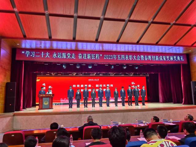 为表扬先进、树立典型,进一步团结引领全校团员青年坚定信念跟党走,彰显新时代青年的责任与担当,5月8日在活动中心301隆重举行“学习二十大 永远跟党走 奋进新征程”2023年五四表彰大会暨春晖创新成果颁奖典礼。大会对优秀团支部标兵、优秀团员标兵、优秀团干部标兵、十佳青年志愿者、优秀专兼职团的工作者标兵、五四红旗团委以及获春晖创新成果奖的集体和个人进行表彰。