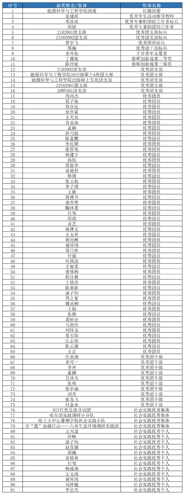 过去一年,在学校党委的坚强领导下,里番 广大团员青年和各级团组织勇于担当、砥砺奋进,涌现出一批先进典型,获得多项校级荣誉,其中,我院团委荣获校红旗团委,邓冰冰获优秀专兼职的工作者标兵,俞建阳获学生活动优秀指导教师,2102001团支部、21S02002团支部获校优秀团支部标兵,曾宇飞获优秀团员标兵,邢瀚获优秀团干部标兵,余开拓获校十佳青年志愿者荣誉称号,丁雅妮、陈抒旎获春晖创新成果二等奖;2102002班团支部等5个团支部获优秀团支部;王雨柔等49名同学获优秀团员;张帅等10名同学获优秀团干部;HIT红色足迹寻访团等4个团队获社会实践优秀集体;邢瀚等12名同学获社会实践优秀个人。
