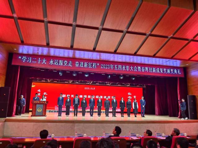 为表扬先进、树立典型,进一步团结引领全校团员青年坚定信念跟党走,彰显新时代青年的责任与担当,5月8日在活动中心301隆重举行“学习二十大 永远跟党走 奋进新征程”2023年五四表彰大会暨春晖创新成果颁奖典礼。大会对优秀团支部标兵、优秀团员标兵、优秀团干部标兵、十佳青年志愿者、优秀专兼职团的工作者标兵、五四红旗团委以及获春晖创新成果奖的集体和个人进行表彰。