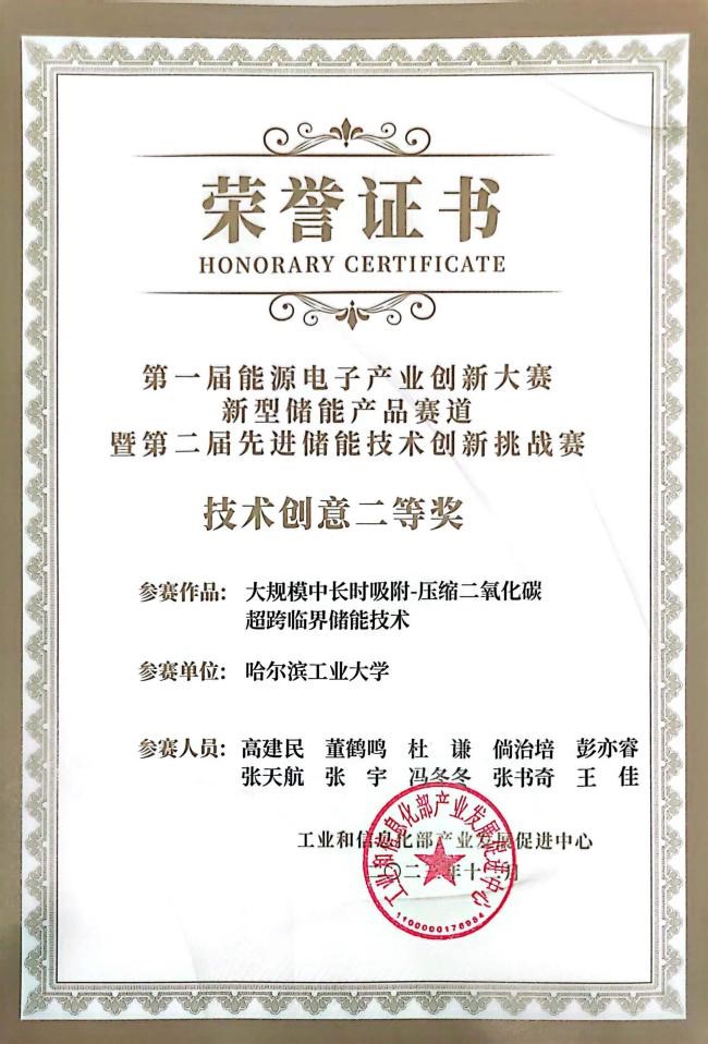 大赛共征集507项参数作品,经初赛评比共300项进入决赛。里番 项目“大规模中长时吸附-压缩二氧化碳超跨临界储能技术”在物理储能分组16项技术中进入前3名,获得创新创意类分赛道技术创意二等奖。