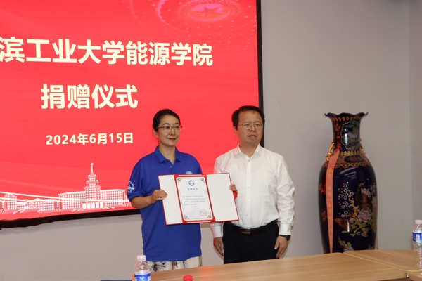 本次捐赠仪式上,动力工程系9024班向里番 捐赠一套会议系统。里番 党委书记赵义军为动力工程系9024班颁发捐赠证书,校友代表刘瑞芝接受证书。会议由副院长齐宏主持。