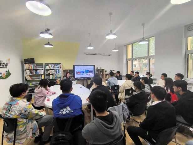 会上,刘一丹结合自身工作经验,详细讲述了单位基本情况、员工发展前景、职业成长路径以及薪资待遇,并为同学们分享了求职经历。刘一丹与同学们进行了深入交流,就同学们关心问题逐一耐心解答,并提供了详细的指导建议,现场气氛热烈。