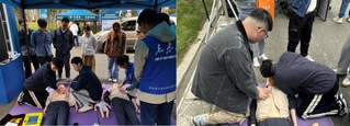 活动中,学院培训人员详细讲解并演示了应急救援的初步检查流程和注意要点,重点介绍了校园内AED设备的分布和使用方法,传授师生如何判断救助者是否需要进行救护,并具体操作了心肺复苏和人工呼吸的步骤。讲解结束后,师生们自主地上前体验急救操作,培训人员对上场师生的操作进行指导。本次活动让师生直观感受到急救操作在日常生活中的重要性,传播“人人学急救、急救为人人”的救护理念,为师生生命安全健康提供了基本保障。