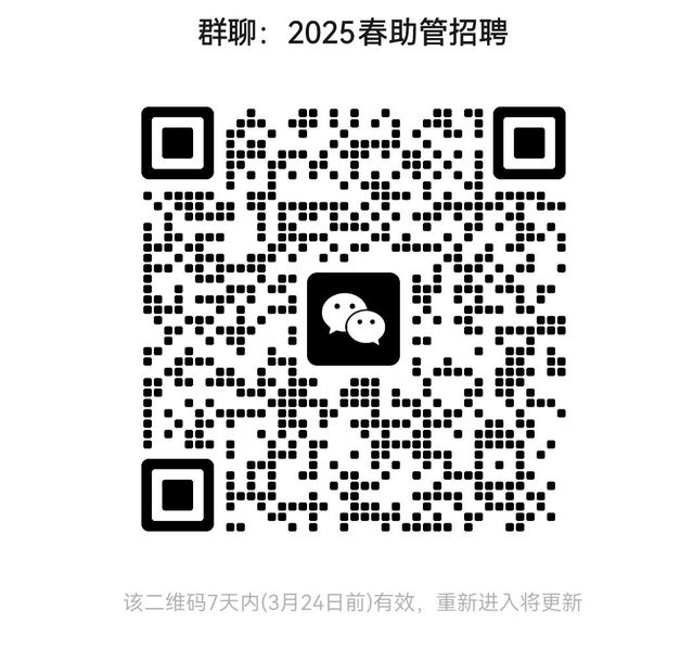 招聘流程为:填写报名链接→集中面试→学院审核→学生工作部门复审→岗前培训→正式上岗。有意向学生请于2025年3月19日12:00前填写报名链接,同时微信扫码进群。