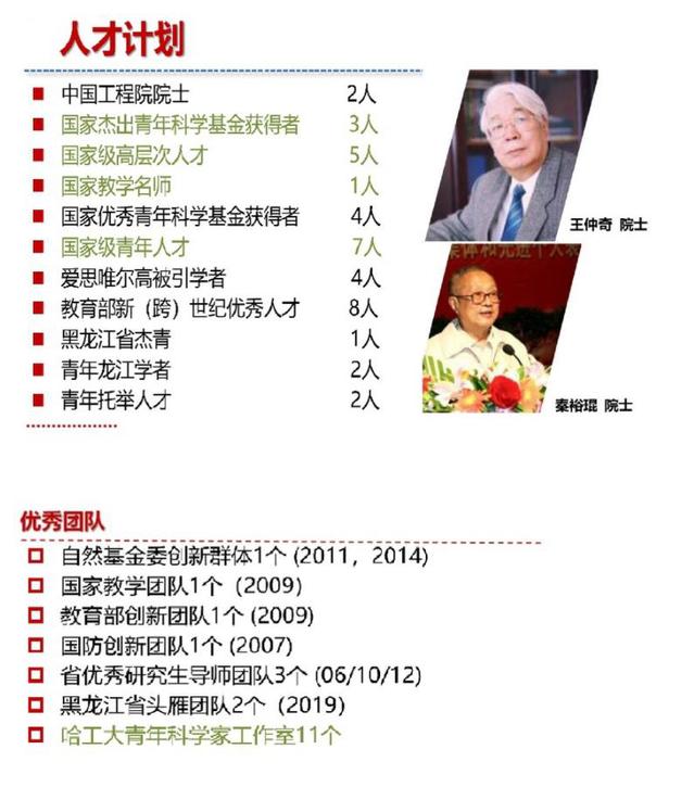 拥有中国工程院院士2人;国家杰出青年基金获得者3人,各类国家级高层次人才5人;国家优秀青年基金获得者4人,各类国家级青年人才7人;国家教学名师奖获得者1人,教育部新世纪人才8人。
